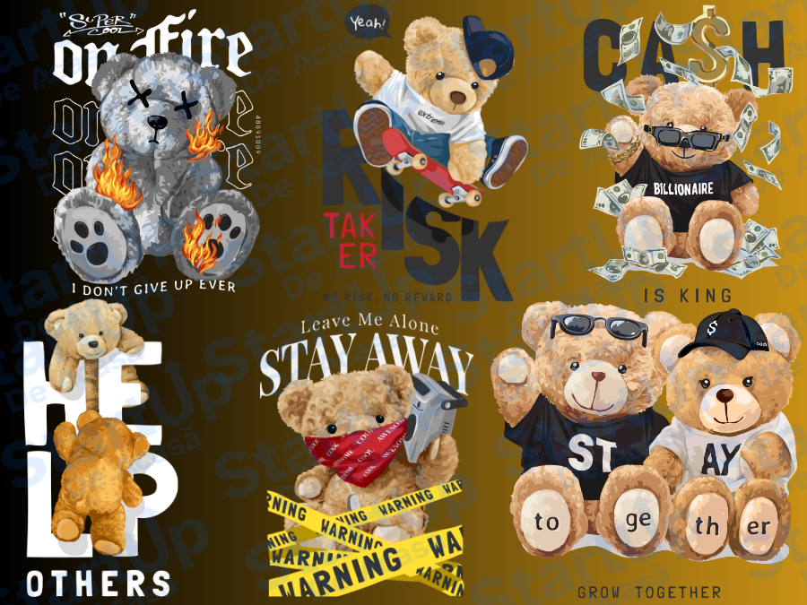 Toate designurile sunt in format .PNG, au rezoluția optimă pentru imprimare DTF (300dpi) și au fundal transparent.